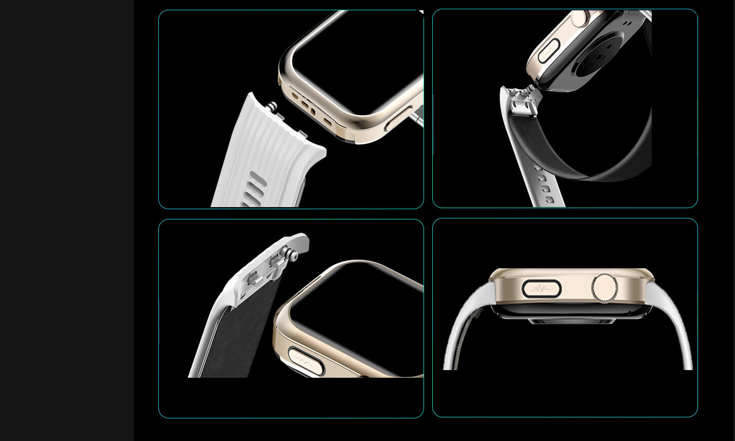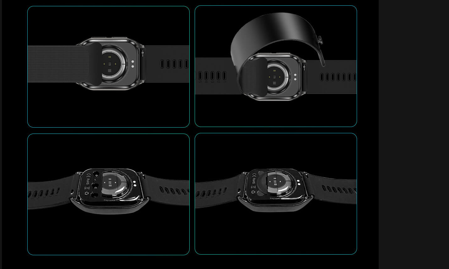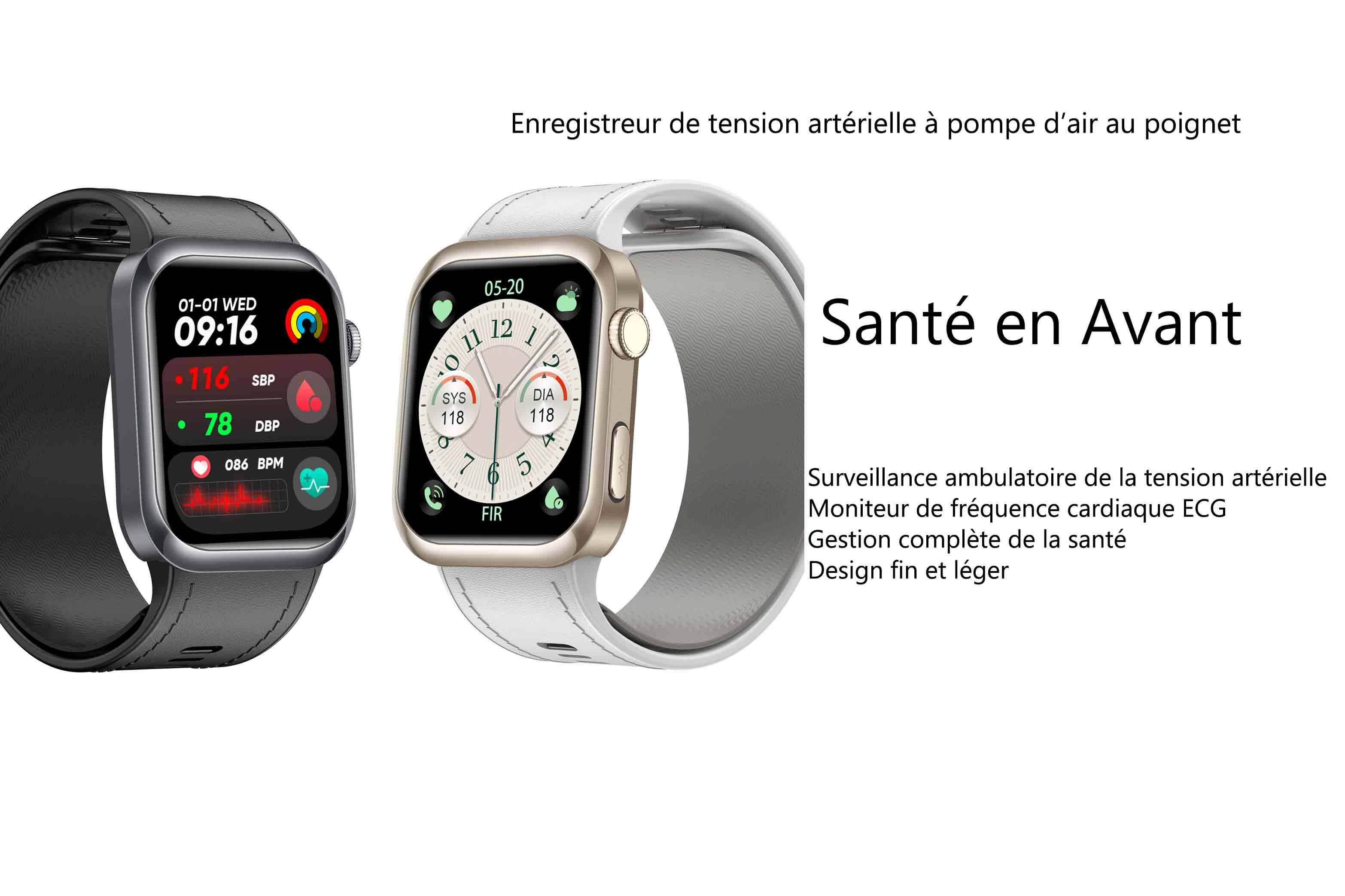 | Matériau & Finition | Cadre : Alliage métallique ; Dos : PC+ABS+Verre conducteur haute performance de qualité médicale ; Bracelet : Silicone écologique ; Sac air : TPU écologique |