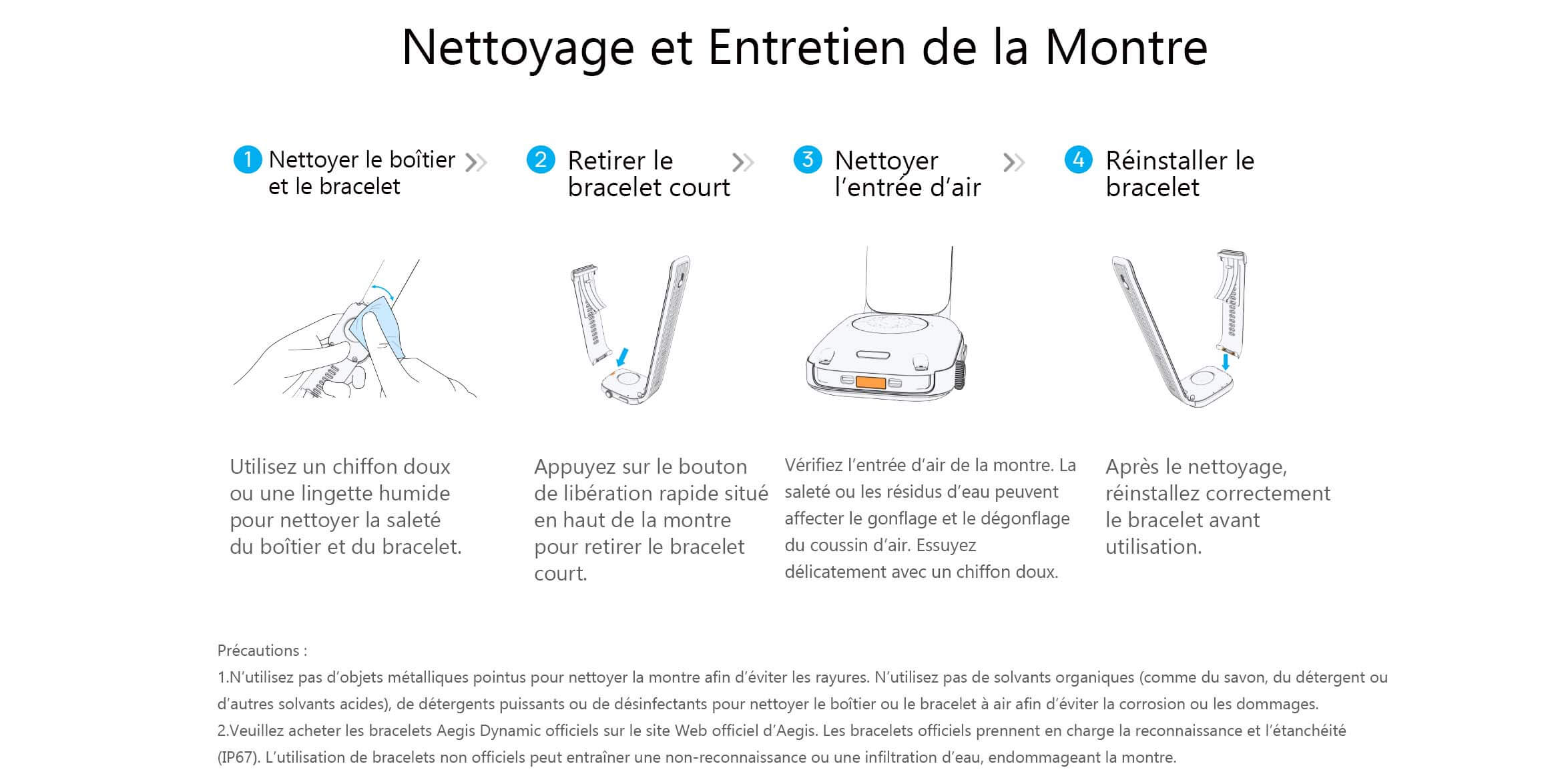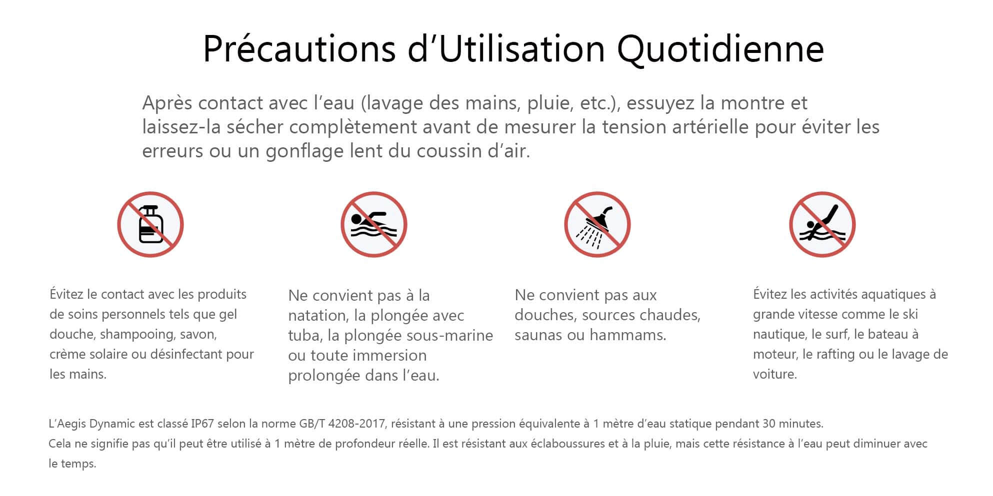 Contrairement aux tensiomètres à brassard traditionnels, la montre Aegis est plus confortable et peut être portée toute la journée (sauf sous la douche ou lors d’activités aquatiques). Elle facilite la mesure et le suivi continu de la pression artérielle et des données de santé, vous aidant à mieux comprendre votre corps.